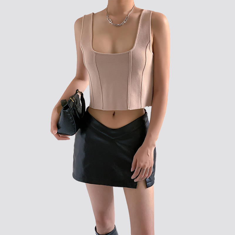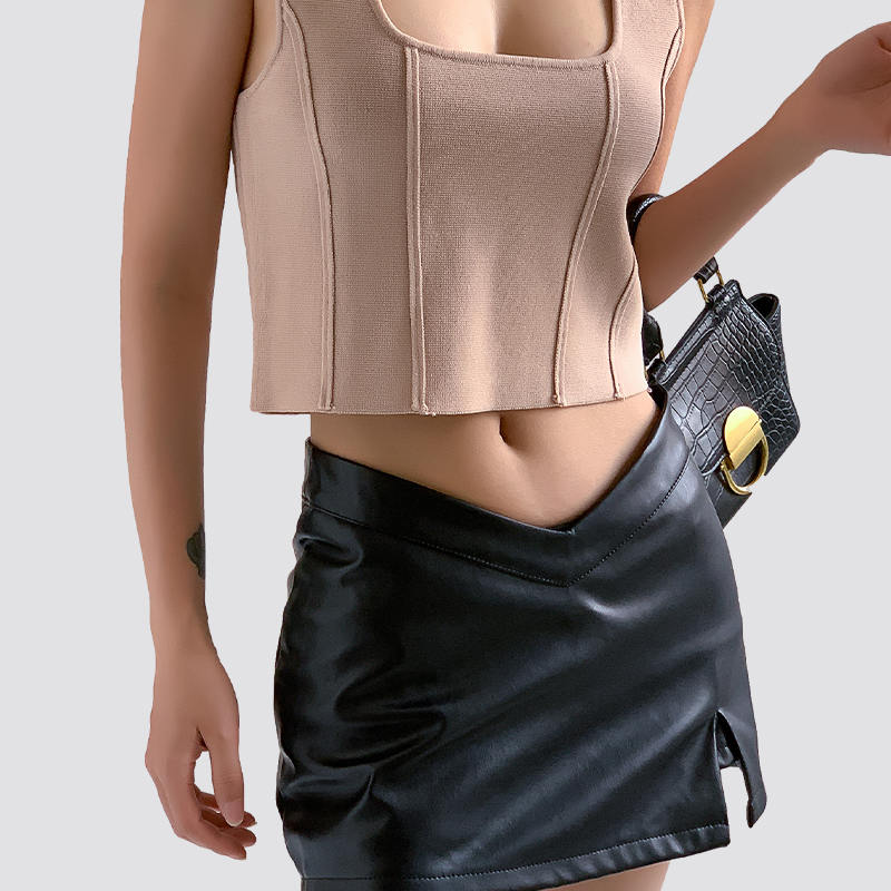 Kort stil, parret med højtaljede bukser eller højtaljede nederdel